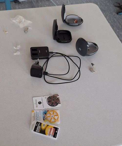 Er hatte dazu verschiedene funktionstüchtige Hörgeräte, Ladestationen und auch Batterien für Hörgeräte mitgebracht. So konnten wir sowohl " In-dem-Ohr" - als auch "Hinter-dem-Ohr" - Geräte in die Hand nehmen, in ihre äußeren Bestandteile zerlegen und auch Batterien einsetzen. Wir verglichen Ohrpassstücke (Otoplastiken) aus unterschiedlichen Materialien und in verschiedenen Größen. Diese werden übrigens für jede Ohrmuschel individuell angefertigt. Außerdem zeigte uns Herr Bauer, wie Hörgeräte mit Akkus richtig geladen und Hörgeräte mit Batterien neu bestückt werden. Da ist wirklich Fingerfertigkeit gefragt. Jetzt ist uns auch klar, warum viele Seniorinnen und Senioren zum Anlegen eines Hörgerätes die Unterstützung einer Pflegefachkraft brauchen. Herr Bauer gab uns Tipps, wie wir erkennen können, welches Hörgerät in welches Ohr muss (rot=rechts, blau=links) und wie wir sie am besten einsetzen. Zum Abschluss beschäftigen wir uns noch mit der sachgemäßen Pflege von Hörgeräten, die häufig von Pflegekräften übernommen werden muss.