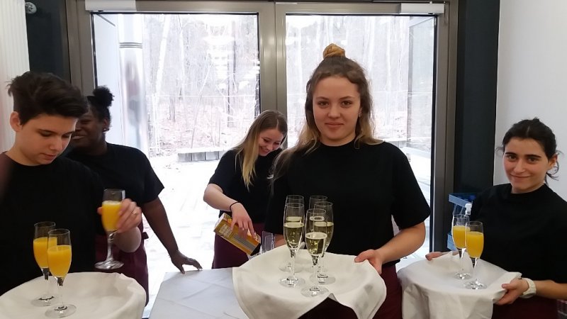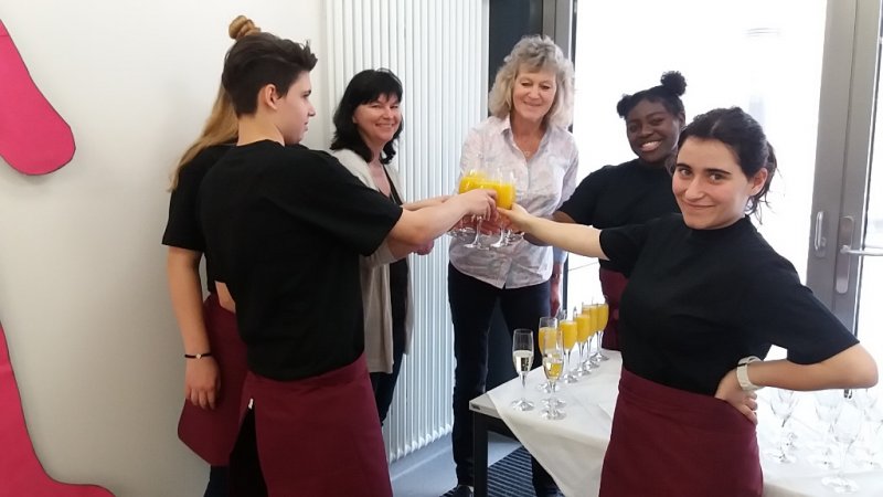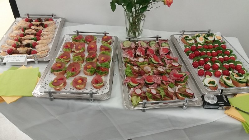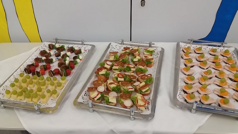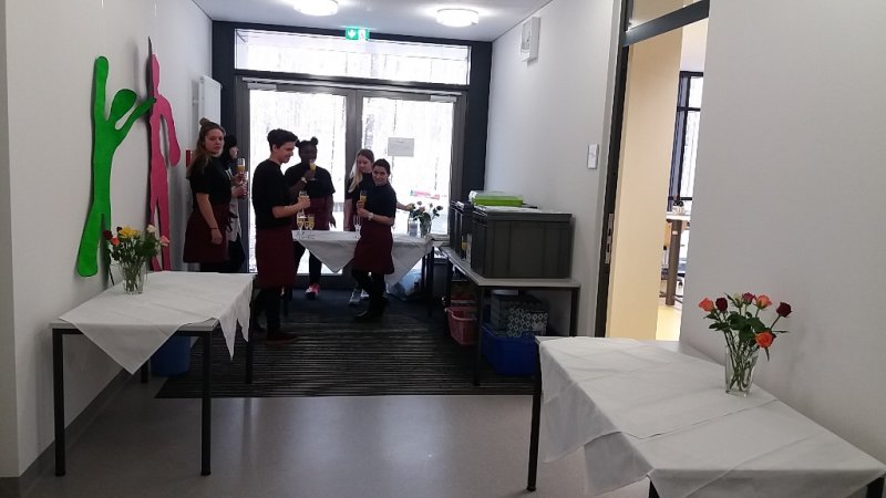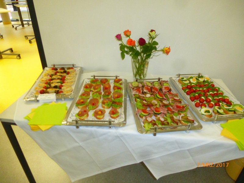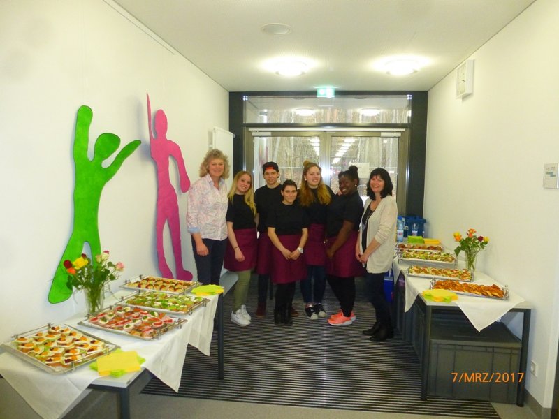 Im Verlauf der Veranstaltung begleiteten sie aufmerksam das Buffet und übernahmen professionell die Bewirtung der Gäste. Sie repräsentierten in überzeugender Weise den hohen Leistungsstand und die Qualität der Berufsvorbereitung an der Berufsschule. Veranstalter und Gäste äußerten sich begeistert über die kreative Vielfältigkeit, Gestaltung und Präsentation der Köstlichkeiten. Das professionelle, zurückhaltende, stets aber aufmerksame Auftreten der Teilnehmerinnen trug darüber hinaus zu einer angenehmen Atmosphäre und zum Gelingen der Feierlichkeiten bei.