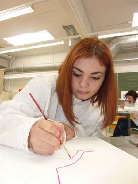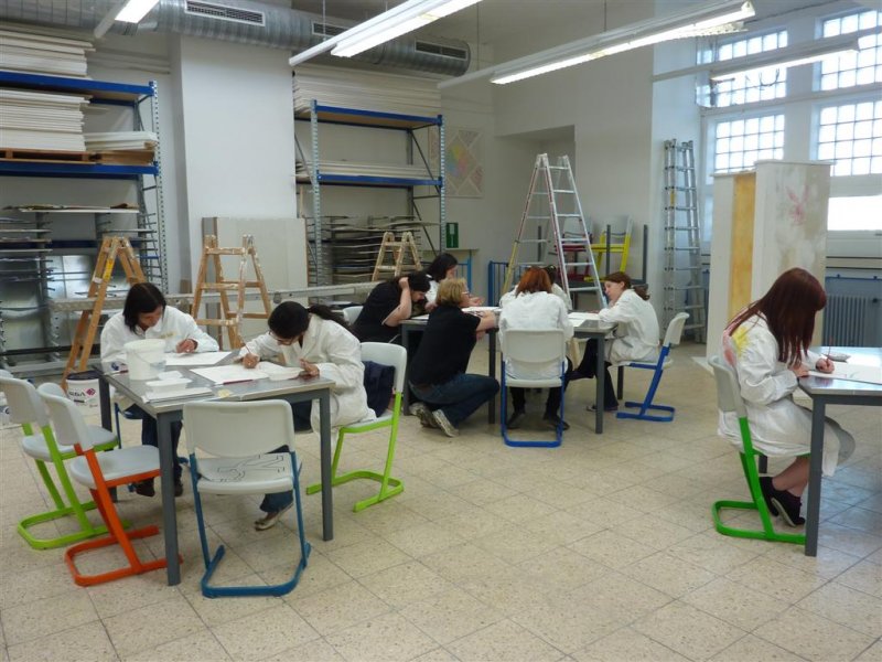 Die Mädchen waren konzentriert bei der Sache und einigen war schnell klar, dass zu diesem Beruf wesentlich mehr gehört als eine gute Note im Kunstunterricht. Trotzdem machten sie bis zum Schluss engagiert mit. Eine gemeinsame zünftige Handwerkerbrotzeit bot die Gelegenheit, sich über die bisherigen Erfahrungen und beruflichen Vorstellungen auszutauschen. Der Tag wurde abgerundet durch Erfahrungsberichte von Auszubildenden aus dem 1. Ausbildungsjahr, die ihre Erlebnisse und Eindrücke aus der Ausbildung anschaulich schilderten.