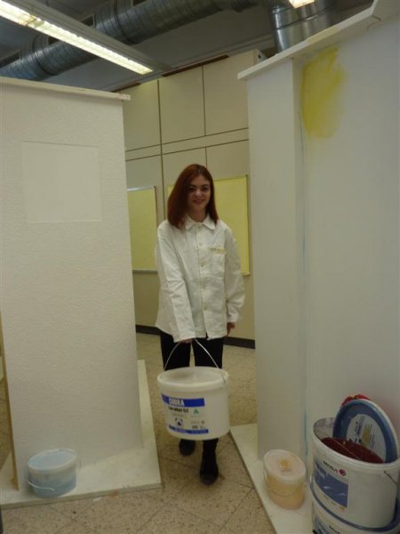 Ein im wahrsten Sinne „buntes“ Programm war am 25.04.2013, dem bundesweiten Girlsday, im BAW geboten. Der Fachbereich Farbe gab acht Mädchen aus den 8. und 9. Klassen der Förderzentren Fürth Süd und dem Förderzentrum Jean-Paul-Platz in Nürnberg die Gelegenheit, sich in einem typischen Männerberuf, als „Maler und Lackierer“ auszuprobieren.